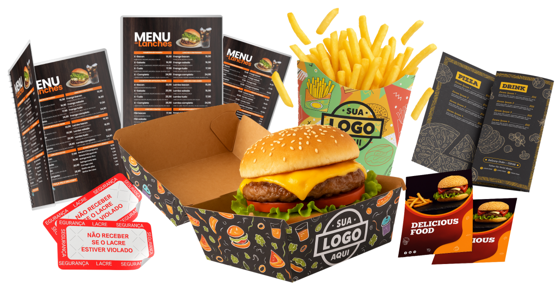 Caixas, embalagens para deliverys e solapas sob medida em papel kraft natural ou triplex branco, impressos em offset/digital, cortes especiais e acabamentos premium (laminação brilho/fosco, verniz UV). Estrutura resistente, montagem precisa e visual que encanta na gôndola.